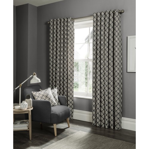 Full of contemporary style the Gotska curtain range is a classic geometric jacquard choice. A perfect addition to a modern living space and a great way to make a statement. Complete with polycotton lining and an eyelet header making it easier to fit without need for hooks or rings. Available in 6 sizes and a trio of colours, there is a colour and size for every room type, choose from; Charcoal, Indigo and Mushroom.