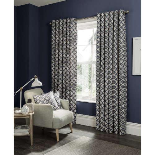 Full of contemporary style the Gotska curtain range is a classic geometric jacquard choice. A perfect addition to a modern living space and a great way to make a statement. Complete with polycotton lining and an eyelet header making it easier to fit without need for hooks or rings. Available in 6 sizes and a trio of colours, there is a colour and size for every room type, choose from; Charcoal, Indigo and Mushroom.