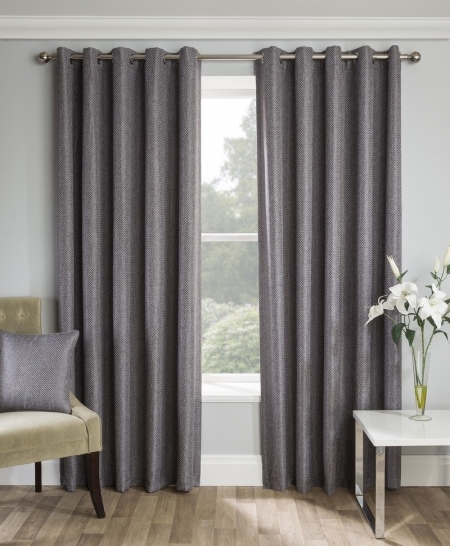 This plain design has a textured woven face and has been finished with a silver eyelet heading which adds a clean cut and contemporary look to this ready made design.