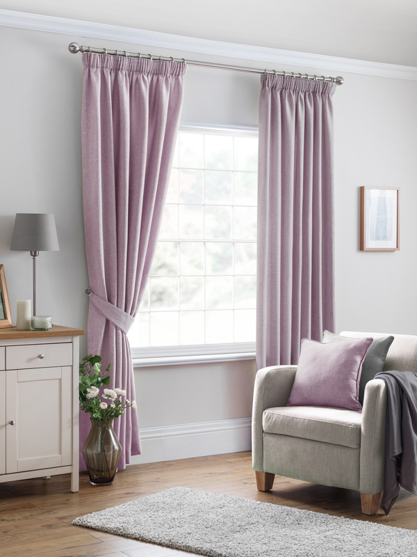 Woven textured plain fully lined curtain with matching accessories available