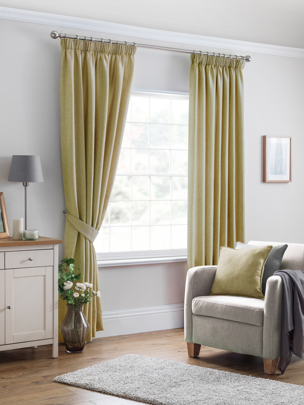 Woven textured plain fully lined curtain with matching accessories available